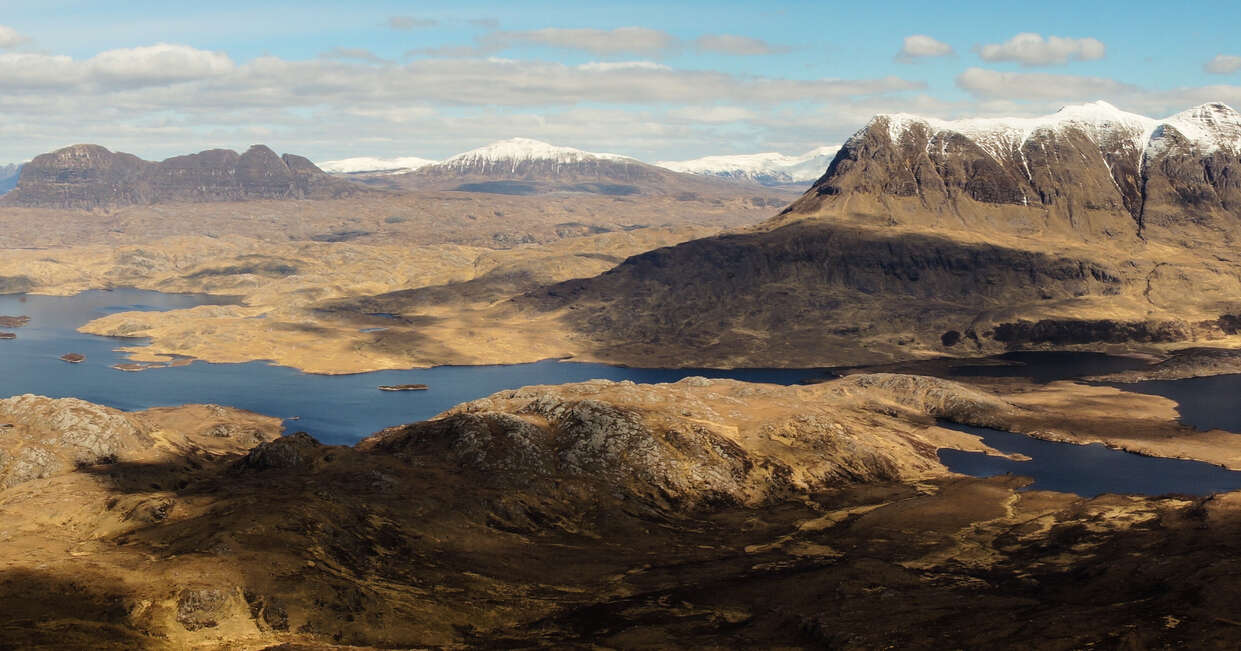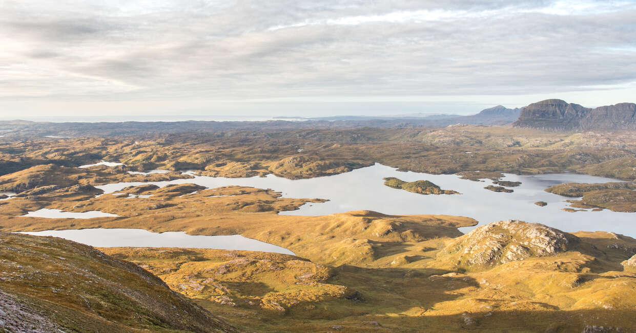 After a full Scottish breakfast, we'll embark on our first exploration of the UNESCO Geopark with a wonderful walk in the Assynt region just to the north of Ullapool. Assynt is rich in indigenous plant life such as lavender, miniature wild orchids, and Scotland's national flower, the thistle. The western part of this area has distinctive-shaped mountains sculpted by the huge forces of glaciation, resulting in 800-million-year-old Torridonian sandstone 'island' mountains that rise majestically from the loch-strewn moors. Our aim today is to climb Cul Mor and the ascent starts from Knochan Crag making use of a good path onto the upper reaches of the hill with some off-trail hiking towards the top. From the summit, we enjoy a breathtaking 360 panorama of this dramatic landscape. We'll descend and return to the vehicle via a different route.