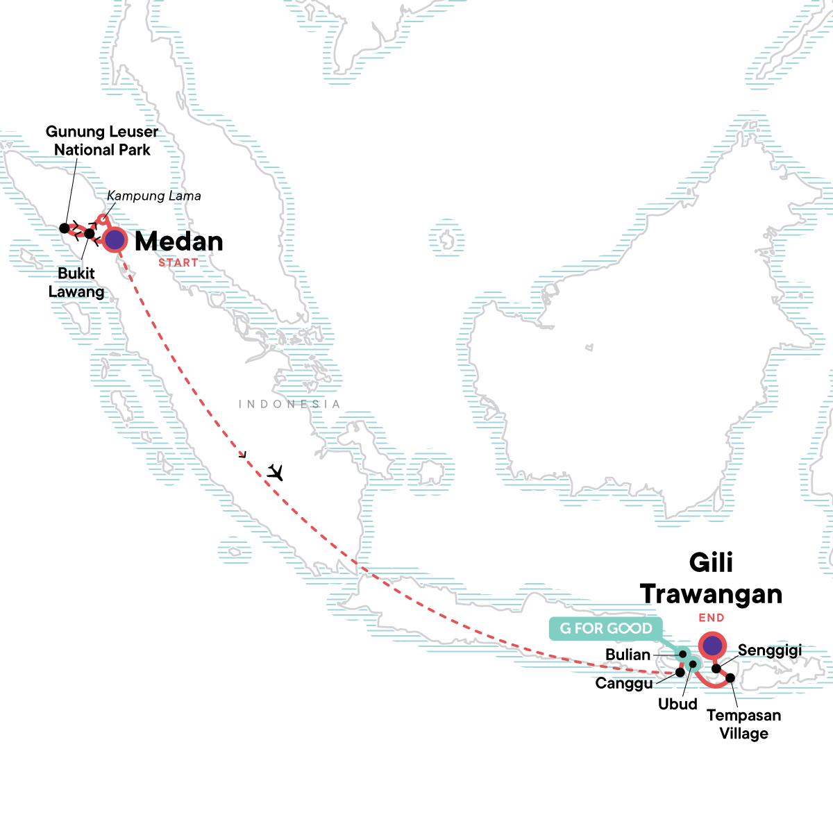 Fly from Sumatra to Bali, from one Indonesian Island to another! Then drive to Canggu for a free evening in this wild town!