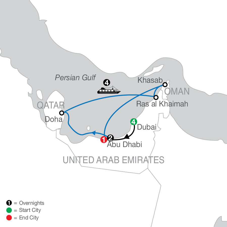 Today, head to the port, and embark your Celestyal cruise ship. Spend the day relaxing onboard or continue your discovery of Abu Dhabi and join an optional shore excursion. (B,D)TOUR HIGHLIGHT SHIP SPOTLIGHT The Celestyal Discovery takes you closer to incredible destinations with warm hospitality and indulgent amenities. Offering a number of ways to relax and recharge onboard—from swimming to spa treatments to gym and retail shops, the ship also offers nine bars and five restaurants with a variety of culinary offerings. So, sit back, relax, and let the Celestyal Discovery make your voyage an unforgettable experience.