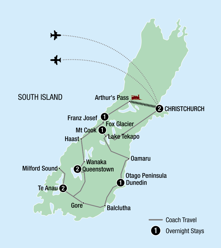 See the snow-capped peaks of the Southern Alps as you travel south along the West Coast. Continue via the Haast Pass, an area of stunning beauty before arriving into picturesque Queenstown, a year-round resort situated on the shores of magical Lake Wakatipu. This evening is at leisure, you may choose to to dine out at one of the many fine restaurants.