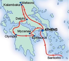 Discover the best of mainland Greece and the islands on this customized itinerary comprising regular tours and individual services. Begin in Athens with a city tour of the Acropolis, Parthenon, and Plaka. Continue on a four-day coach tour to Mycenae, Epidaurus, Olympia, Delphi, and Meteora to explore Greece’s legendary archaeological sites and monasteries. Then travel by high-speed ferry to Santorini, where you’ll enjoy free days to relax, wander picturesque villages, visit black-sand beaches, or take an optional sunset cruise. A perfect blend of culture, history, and island beauty with seamless organization and personal flexibility.