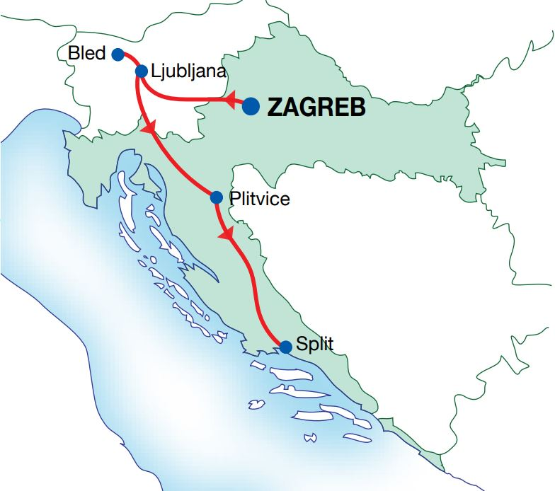Explore the cultural and natural highlights of Croatia and Slovenia on this 5-day private journey. Begin in Zagreb with a walking tour of its Upper and Lower Towns, including the Gothic Cathedral, St. Mark’s Church, and the world’s shortest funicular. Continue to Ljubljana for a guided city tour of the castle, Tromostovje (Three Bridges), and baroque squares, then head to Lake Bled for a private tour of the castle perched above the lake. Travel south to Croatia’s Plitvice Lakes National Park, where 16 terraced lakes and cascading waterfalls await on a private 4-hour tour. Conclude in Split, with the option to explore Diocletian’s Palace and the historic old town.