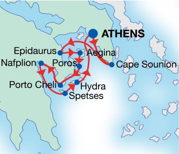 Begin your journey with embarkation in Lavrion on Friday, followed by a welcome drink, dinner, and a refreshing swim near Cape Sounion. Cruise to Epidaurus and Aegina for optional visits to the ancient theatre, Athena Aphaia Temple, Paleochora village, and a 1500-year-old olive grove. Continue to Poros for beach time, sightseeing, and a lively evening, then on to Porto Cheli for relaxation, swimming, and waterfront dining. Explore Nafplion with optional tours to Mycenae and museums, followed by a visit to Spetses, where you can enjoy its car-free charm, nightlife, and a romantic horse-carriage ride. After a swim stop at Dokos, arrive in Hydra, a UNESCO-preserved island, and end the journey with a farewell dinner under the Temple of Poseidon before disembarking in Lavrion on Friday.