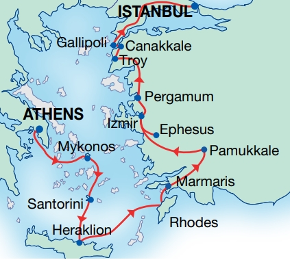 Greece and Turkey’s close geographical location provides a wonderful opportunity for travelers to visit both countries on the same trip, from the Greek Islands' beautiful beaches to the historical sites of Turkey. Our Greece & Turkey Delight tour combines the must-see Greek islands of Mykonos and Santorini and Crete as independent travel with small group tour of Turkey from Marmaris to Istanbul. Visit Turkey's Istanbul, the capital of Roman, Byzantine and Ottoman Empires; the ancient port city of Ephesus; the mineral-rich thermal waters and white travertine terraces of Pammukkale and Anzac Cove at Gallipoli.