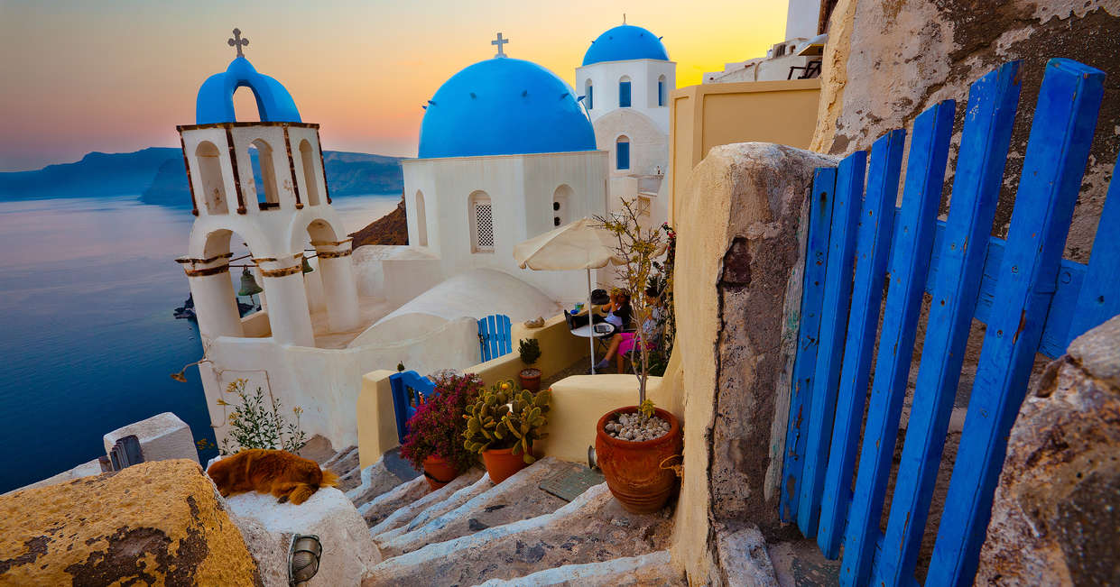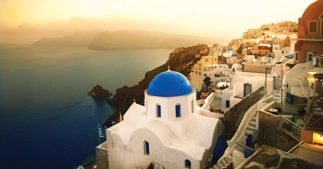 The posterchild of Greece's tranquil islands, Santorini (or Thira as the island is also known) is renowned for its natural beauty. It's the most southerly of the Cycladic Islands and is perhaps most famous for its whitewashed churches with blue-domed roofs. It's also an area of particular interest to those keen on the Lost Atlantis legend.