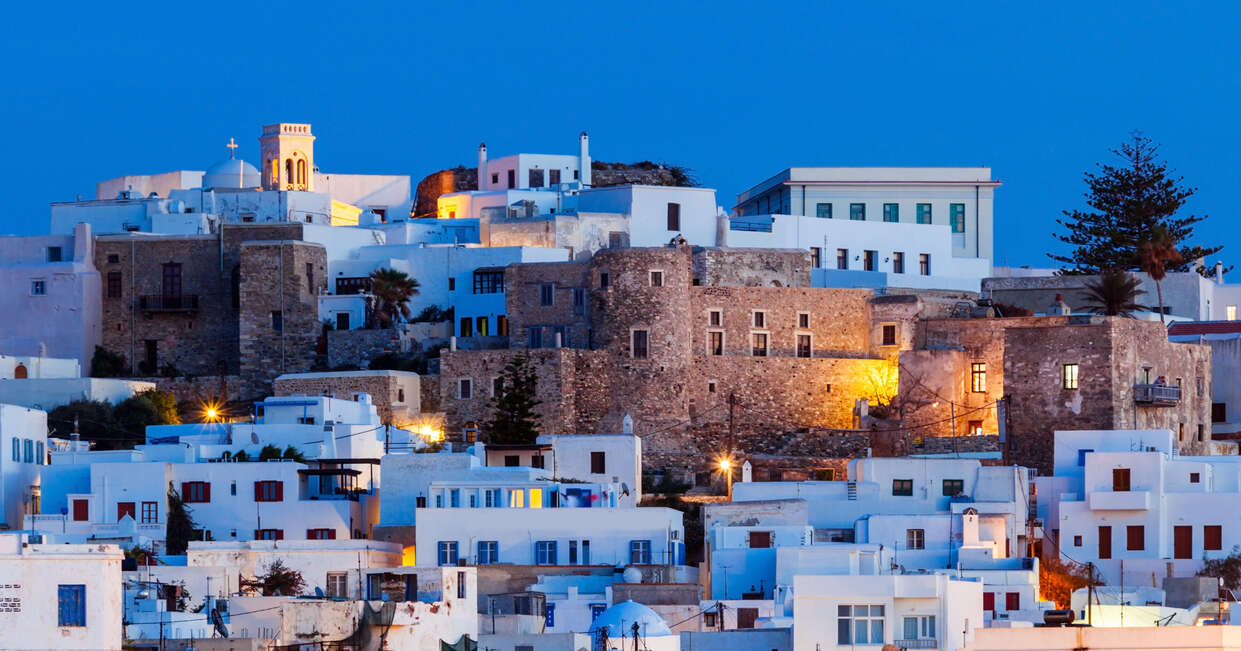 This afternoon, we'll head out to explore Naxos town on foot. At the entrance to the harbour sits the grand Portara marble gate, the doorway of the Temple of Apollo, that has greeted visitors for over 2500 years. The town itself is a mix of whitewashed houses and medieval Venetian mansions, with the fortified 'kastro' (castle) occupying a prominent position overlooking the bay. Our tour leader will show us around the network of alleyways and courtyards, as well as making recommendations for eating out in town. We'll return to our hotel along the promenade alongside Grotta beach.