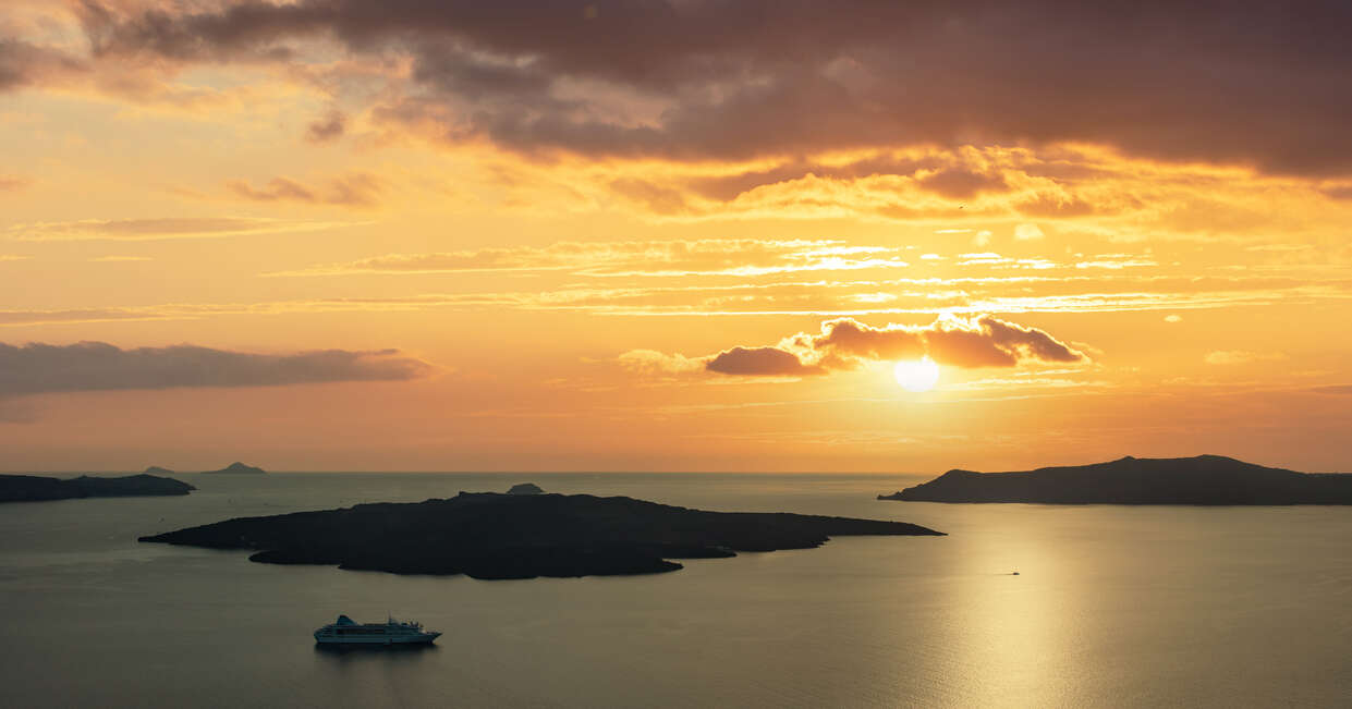 In the late afternoon, we'll head to the port of Athinios and board a shared sailing boat. The captain will take us to the best spots to enjoy the vistas of the Caldera and the Volcano. A delicious buffet dinner is served onboard and, before the sun starts to dip into the water, the captain will bring the boat to the prime viewing spot to capture it in all of its glory. After the sunset, we'll sail back to Athinios port, where we'll be met and taken back to our hotel.