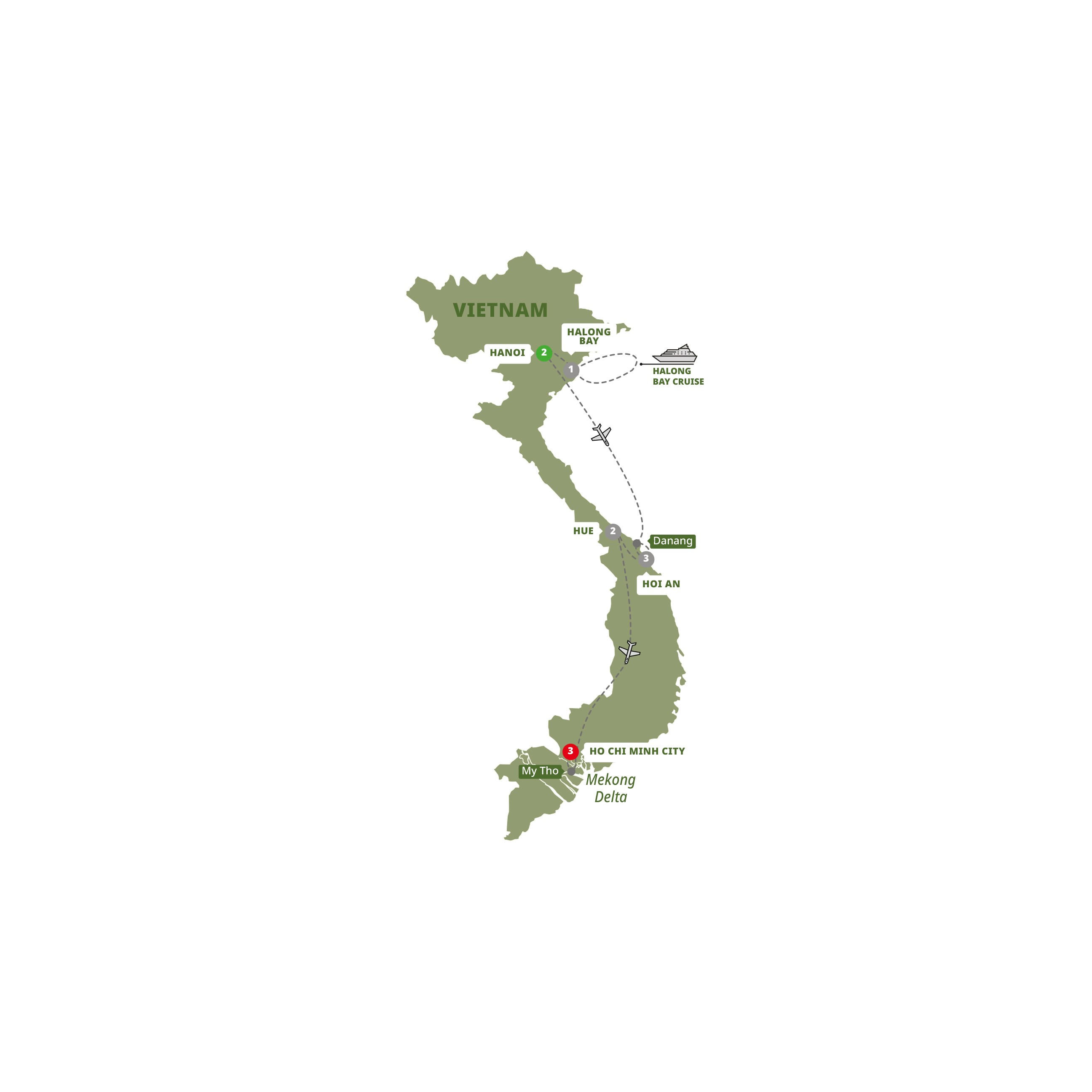 - Flights from Hanoi to Danang and Hue to Ho Chi Minh City