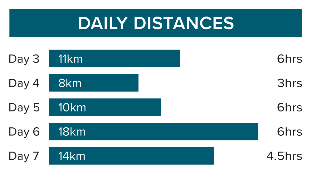 Today's 10 kilometre/6.2 mile walk is expected to take approximately 5 to 6 hours with a total ascent and descent of 800 metres/2,624 feet.