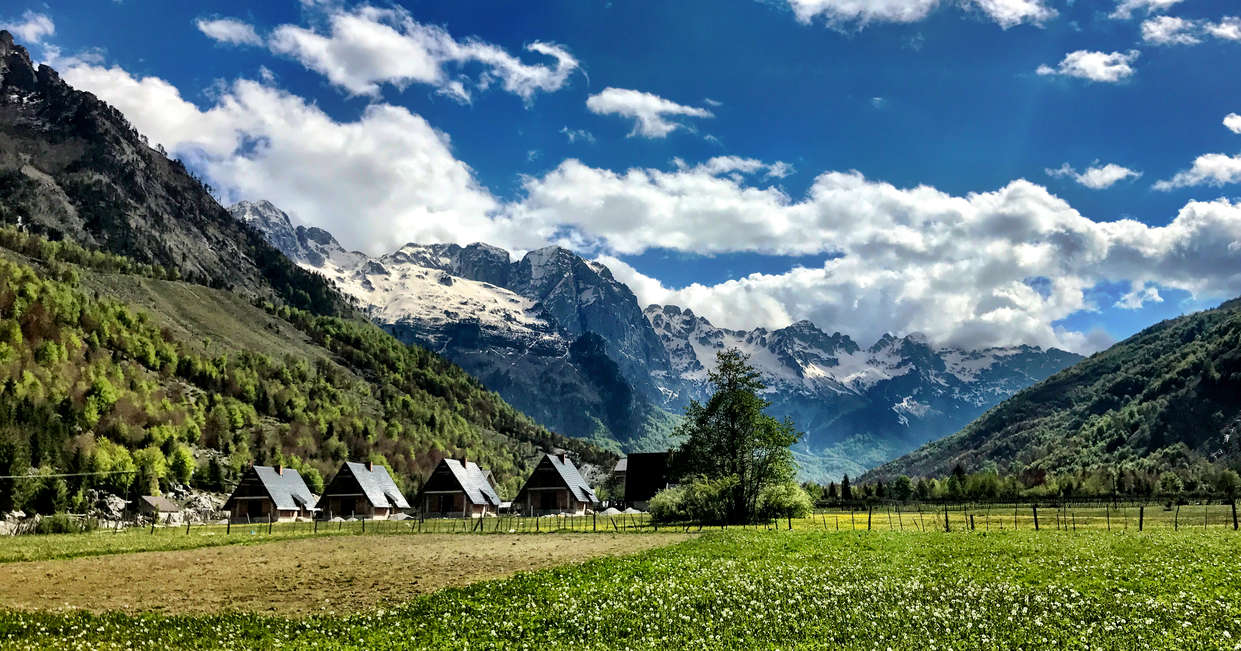 Theth is an iconic Northern Albanian 'malesore' (highlands) village. Enclosed in the full remoteness of the Accursed Mountains, it stayed protected from the multiple invasions that afflicted the more accessible parts of the Alps and life was organised following the detailed rules of the 'Kanun' - the Unwritten Code of the Mountains. These aspects were well pictured by the Victorian traveller Ms Edith Durham in the book, High Albania, written on her journey into the area at the beginning of the 20th Century.