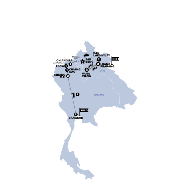 Catch ya later, Chiang Mai. Today, we'll hit the road to Chiang Dao, rolling past rice paddies and big green views. You’ll stop at Sri Lanna National Park, then climb up Bua Thong “Sticky” Waterfall (yep, you ain't slipping here).Next, we’ll head into Chiang Dao Cave for a guided walk through huge limestone chambers, epic formations, and hidden Buddhist shrines. In the afternoon, we'll continue on to Chiang Dao and check into our hotel. The rest of the day is all yours to do what you please.