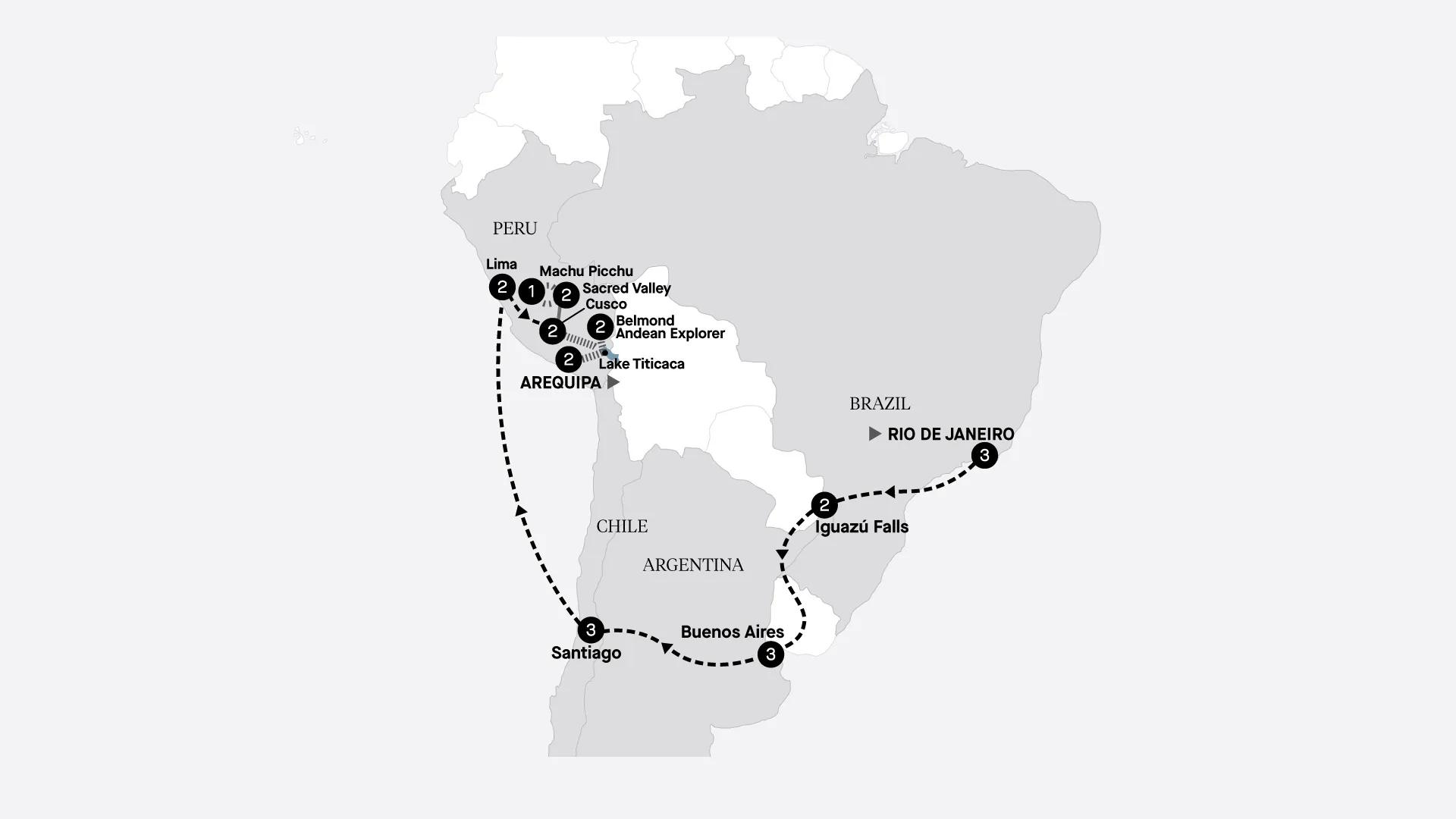 South America's kaleidoscope of cultures, flavours and natural wonders will captivate your senses at every turn on this 23-day adventure, limited to a maximum of just 24 guests. Stay just steps away from Rio de Janeiro's famed Copacabana beach in Brazil, then soak up the splendour of Iguazú Falls. Buenos Aires enchants with cosmopolitan charm and fiery tango in Argentina, while Chile's capital Santiago mesmerises with vibrant street art and historic architecture. Finally, venture to Peru — a soul-stirring land of ancient salt mines, spellbinding Andean mountainscapes and the wondrous Machu Picchu. An unforgettable two-night rail journey through the Peruvian Highlands aboard the luxurious Belmond Andean Explorer rounds off this sensational journey.