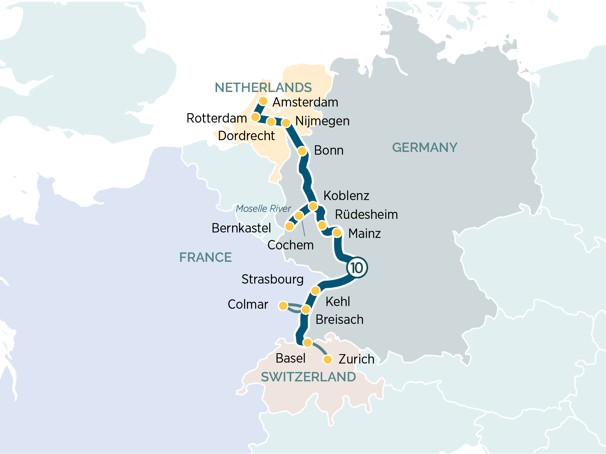 In the afternoon, you’ll arrive in Rüdesheim, a delightful small town and gateway to storied German wine culture and Rhine Valley history. A blend of medieval architecture and a lively, tourist-oriented atmosphere, Rüdesheim is celebrated for its fine wines, especially Riesling and Sekt (sparkling wine). Wine-making traditions here date back over a millennia.