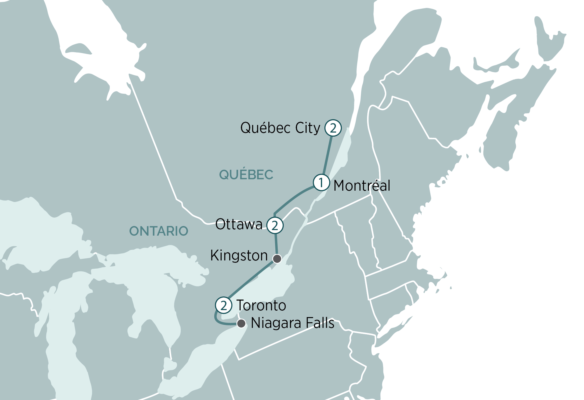 Departing Montréal, make your way to a traditional Québécois Sugar Shack. Visit Deschambault, a quaint village along the St. Lawrence River before a scenic drive along the “Chemin du Roy” (King’s Road), the oldest roadway in Canada. Arrive in Québec City in the afternoon and meet our local guide for a tour of The Plains of Abraham, the Citadel and Parliament buildings. Later, embark on a walking tour within the walls of the Vieux Carré (Old City) and visit Lower Town.