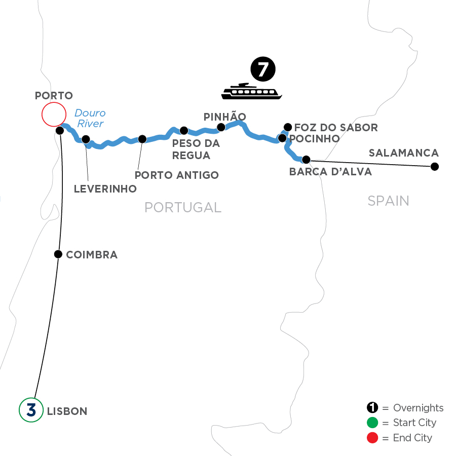 The Reign in Spain CLASSIC Join our guide for a guided tour this morning to of one of the most remote villages of the country, Freixo de Espada à Cinta village in the Douro International Natural Park, home to majestic birds of prey, OR: CLASSIC Enjoy a guided tour to the historical village of Castelo Rodrigo, which, from the top of a hill, dominates the plateau that stretches from Spain in the east to the deep valley of the Douro in the north. Stroll through its medieval streets and discover the small details that give it colour, such as the Hebrew inscriptions and crosses carved on the doorposts and voussoirs, OR:CLASSIC Get a taste of Spain with a full-day excursion to Salamanca. This Spanish city will take your breath away with its stunning streets and squares, featuring a feast for the eyes with Romanesque, Gothic, Baroque, and "Plateresque" architecture. Stroll through Christmas markets and enjoy the magical atmosphere of the city during festive time. This evening, enjoy live entertainment on board.OVERNIGHT DOCKING IN FOZ DO SABOR(B,L,D)