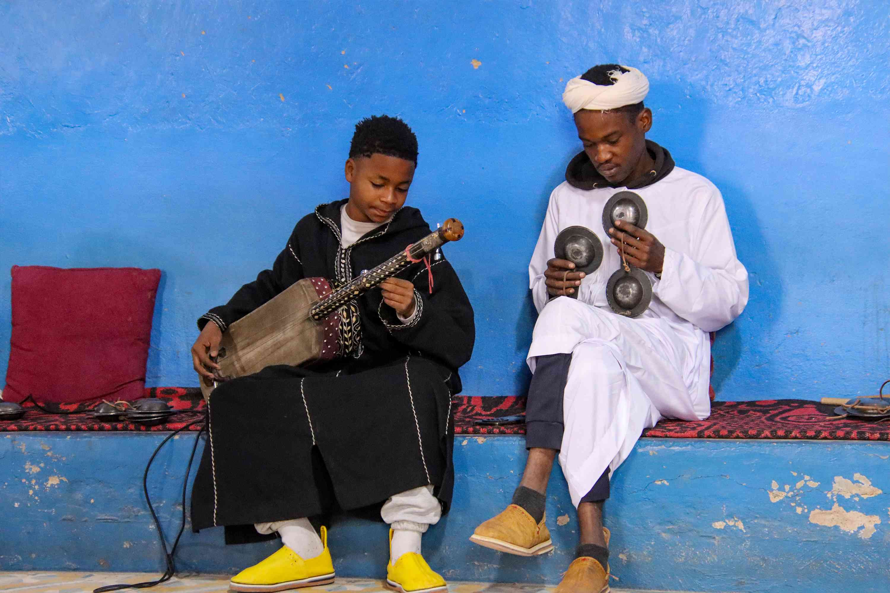 Travel to Khamlia, a small desert village, enjoying Moroccan tea and Gnaoua music with local nomads.