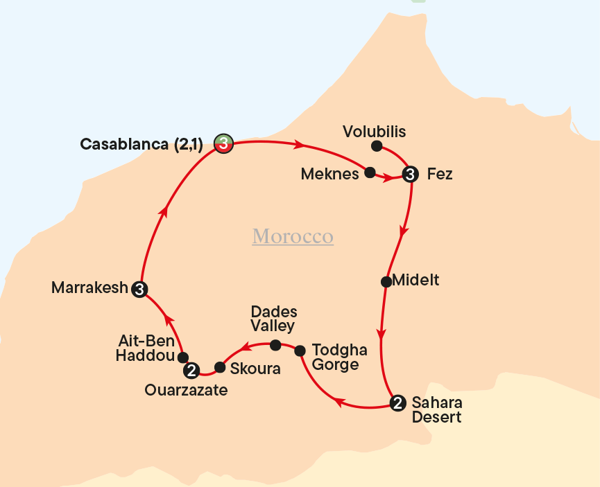 Today we depart the idyllic Marrakesh and make our way back to the beautiful Casablanca.