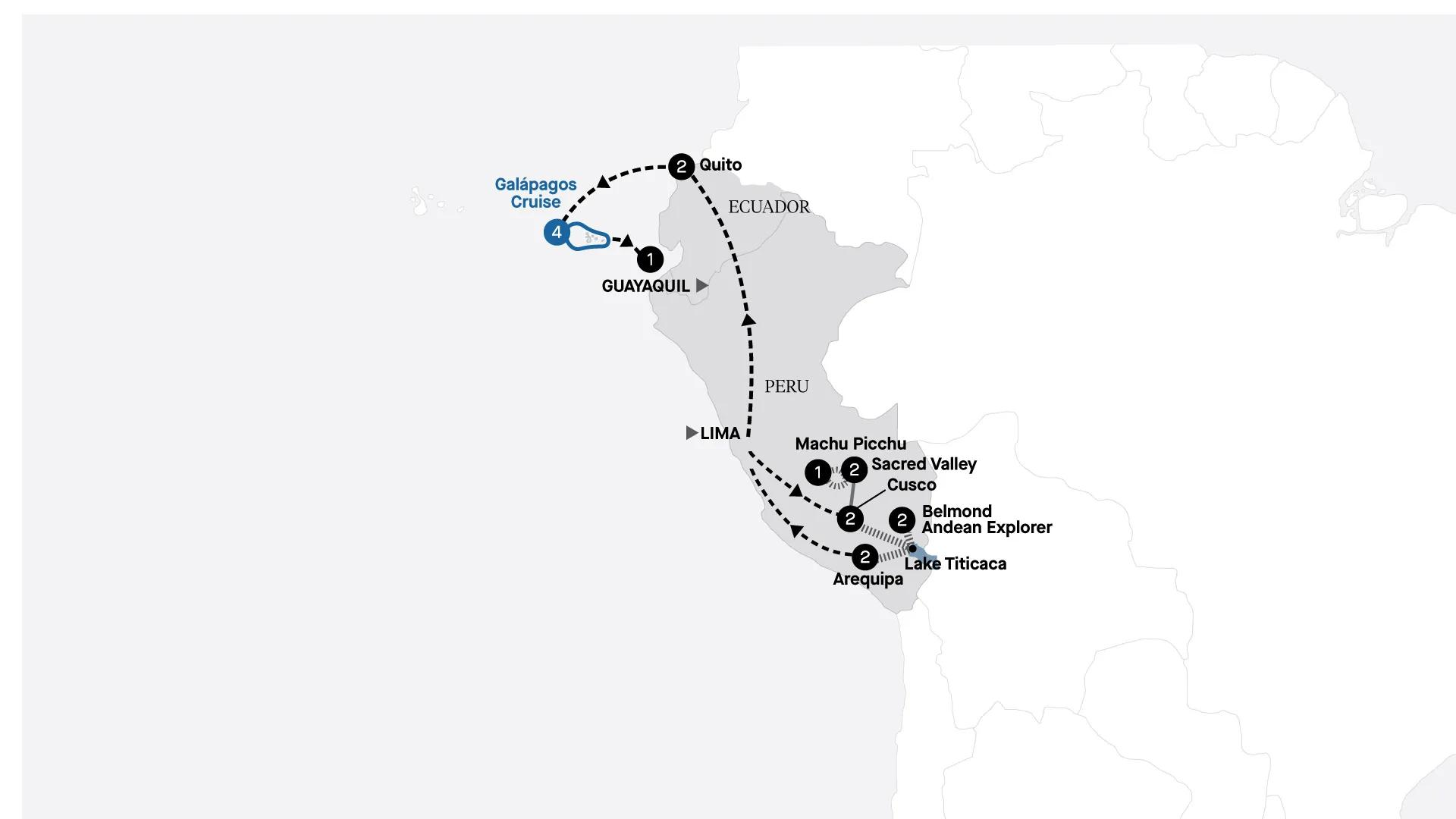 Age-old cultures, spellbinding landscapes and magnificent wildlife await your discovery on this immersive 20-day adventure through Peru and Ecuador's Galápagos Islands. Witness a Peruvian Paso horse show in Lima, then venture to the majestic Sacred Valley to explore ancient salt terraces, Inca ruins and the awe-inspiring Machu Picchu in the clouds. Experience a rail journey like no other aboard the Belmond Andean Explorer, traversing one of the world's highest rail routes from Cusco to Arequipa, then take a four-night luxury cruise through the wildlife-rich Galápagos Islands aboard Yacht La Pinta.