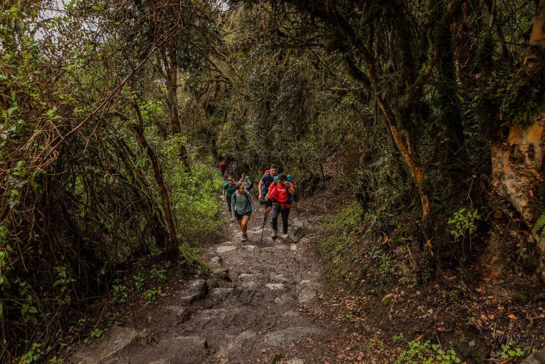 Start the day with a climb through the Pacaymayo Valley to Runkuracay Pass (3980 m). Enjoy views of the snow-capped mountain of Cordillera Vilcabamba before descending for around 2 to 3 hours to the ruins of Sayacmarca. Continue over the trail’s third pass to the ruins of Phuyupatamarca (3850 m), also known as 'Town Above the Clouds'. Start the 2 hour descent down the Inca steps to the final night's campsite by the Winay Wayna archaeological site.