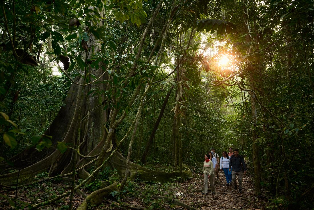 Get ready for an unforgettable day exploring the depths of the Amazon Jungle. Set out on a half-day walk guided by local experts on the area's flora and fauna. Learn from your guides about the medicinal and practical uses for some of the plants that grow here, which Indigenous people have been studying and using for thousands of years. On your walk, keep an eye out for rainbow coloured macaws and butterflies, and listen for the barking call of the peccaries and chattering of monkeys that call the jungle home. This part of the Amazon is also known to house capybaras, giant otters and jabirus, so keep your eyes peeled for these creatures. Return to the lodge for lunch and some free time to relax. Once the sun goes down, venture out on a night walk in search of some of the jungle's nocturnal inhabitants.