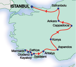 Small group tour with a maximum of 28 people. Start in Marmaris (a perfect getaway for those coming from the Greek island of Rhodes) and continue through Fethiye, Antalya, to Cappadocia for a 2-night stay. Visit Ankara and Safranbolu before arriving in Istanbul. Accommodation in first-class hotels with the service of an English-speaking guide.