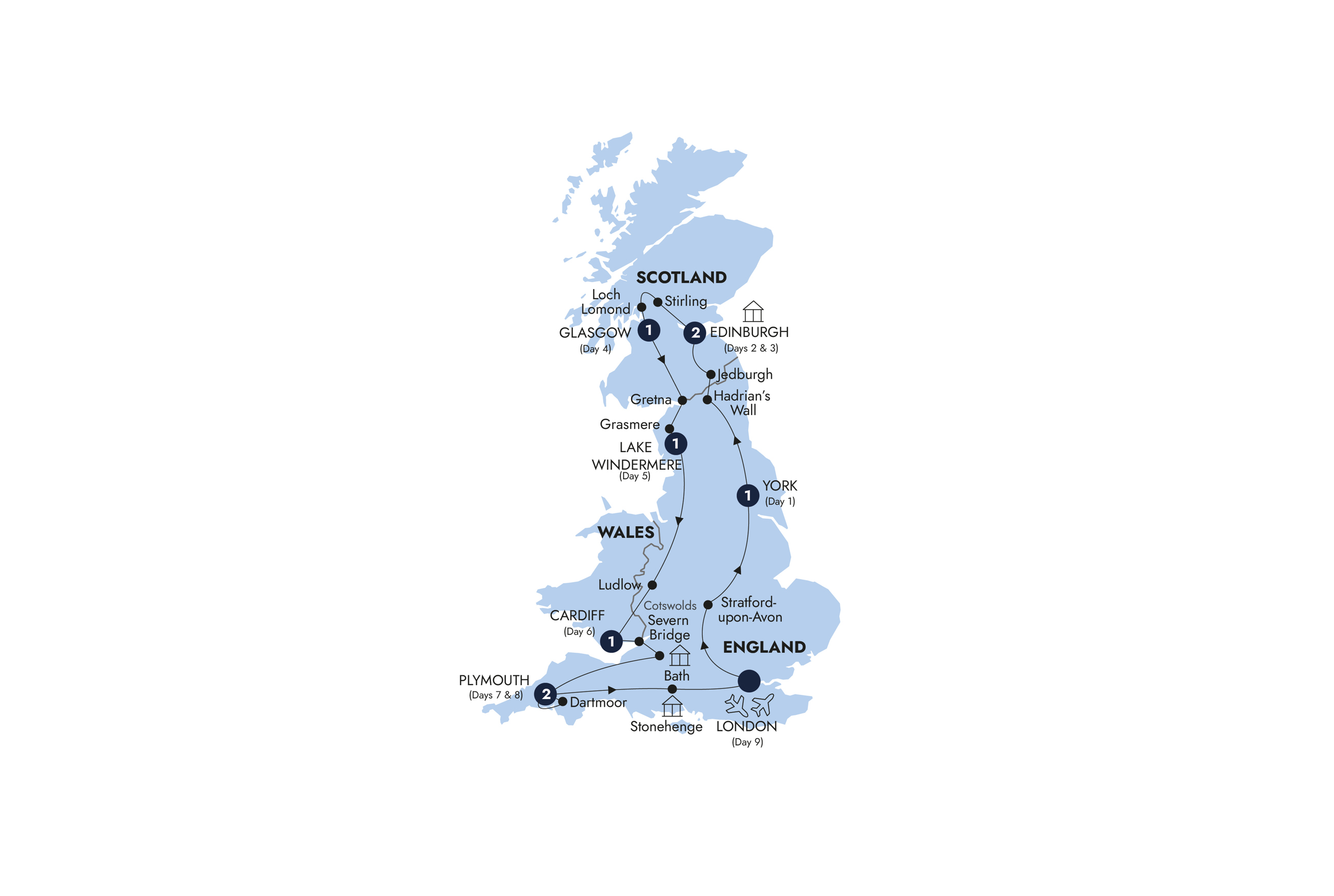 See the very best of Britain on this 9-day guided tour that traverses Scotland, Wales and England. At Edinburgh Castle, sit on the Stone of Destiny, the sandstone seat upon which dozens of Scottish monarchs were crowned. Survey the English Lake District, where mountainous peaks give way to expansive lakes and scenery so picturesque it inspired the words of William Wordsworth. Plus, discover the mystery of Stonehenge, where towering prehistoric stones cast shadows on emerald green fields and sail across Plymouth harbour, with views of the city's royal citadel. Finally, indulge in a feast at a historic mill in the English countryside, enjoying organic seasonal produce freshly picked from the fields just outside.