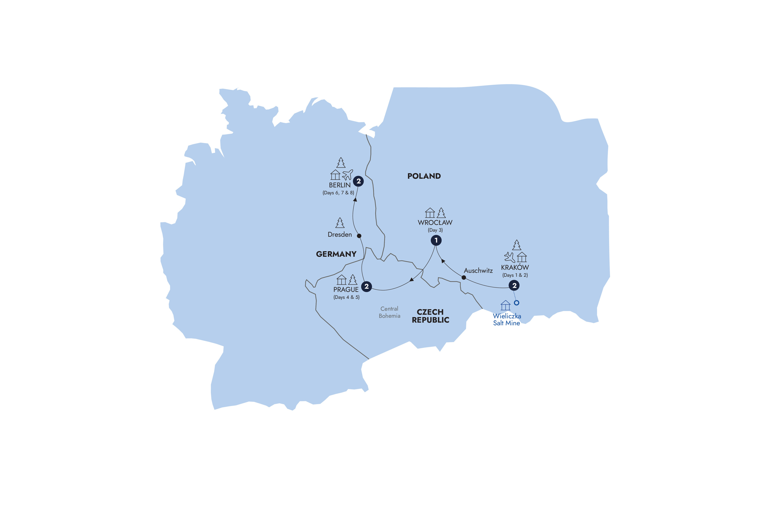 Take your taste buds on a tour of the Czech Republic, discover the food markets of Prague, explore the Kraków Christmas Market in the city’s Old Town district, and indulge in Berlin. Setting out from Kraków, get a sense of Poland’s old-world charm with your Local Expert as you ascend Wawel Hill to the Renaissance castle and cathedral—the final resting place of the Kings of Poland. Known as the Venice of Poland, Wrocław is a wonder to behold with its 150 bridges spanning five rivers and twelve islands, not to mention the Baroque grandeur of the Rynek Christmas markets. In the German capital, see what remains of the Berlin Wall, admire the painstakingly restored Reichstag and soak up the festive magic among the market stalls of Gendarmenmarkt Square.