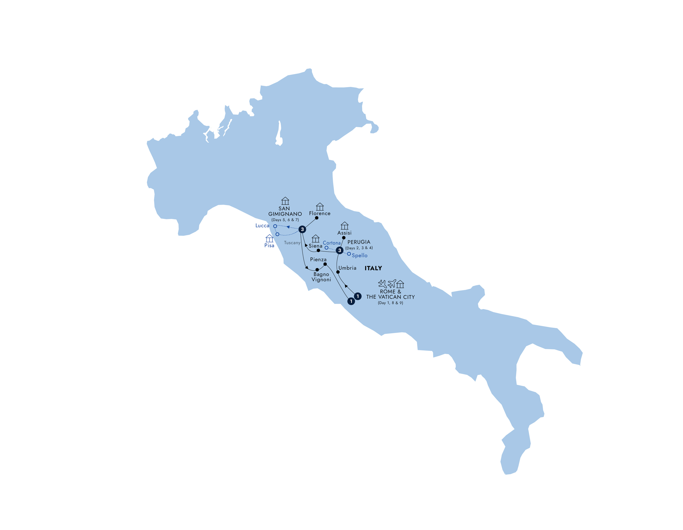 Follow the shores of Lake Trasimeno and continue to the narrow cobbled streets of Siena. Standing in the shell-shaped Campo, imagine the frenzied atmosphere of the biannual Palio horse race and see the Town Hall. Explore Siena with Insight Choice. Choose to visit the medieval Cathedral, or, alternatively, sample panforte, a traditional Tuscan dessert. Travel to the medieval town of San Gimignano where your Travel Director will show you the medieval skyscrapers, serpentine streets and hidden squares. The town is also home to world champion gelato maestro Sergio Dondoli. At his artisan ice cream parlour on Piazza della Cisterna, the silky smooth, frozen treats are beautifully displayed in a range of unique flavours for you to try. Your home for the next three nights is a delightful villa near this jewel of medieval architecture.