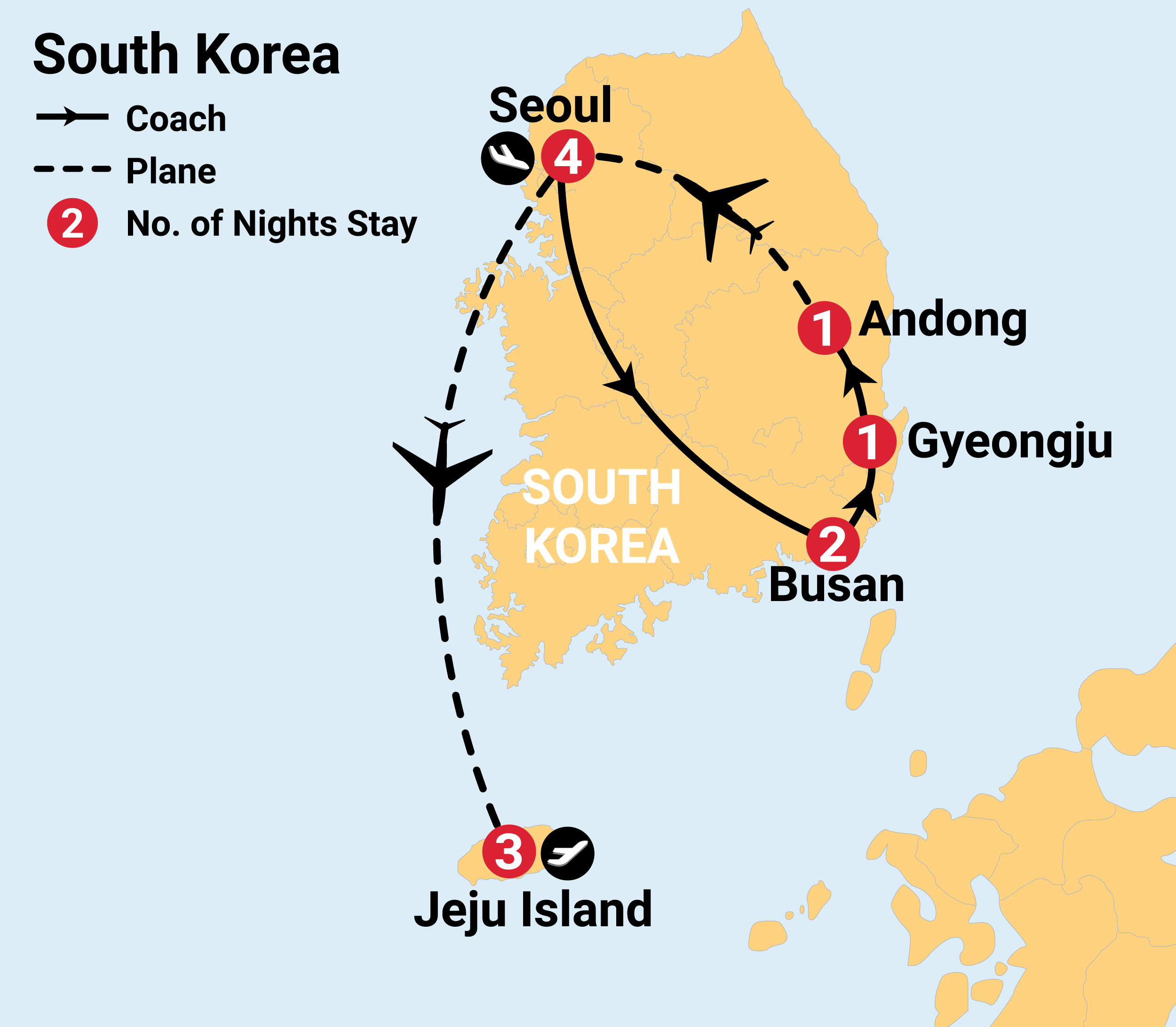 Your South Korean adventure comes to an end today. Following breakfast, you will be transferred to the airport for your onward flight.