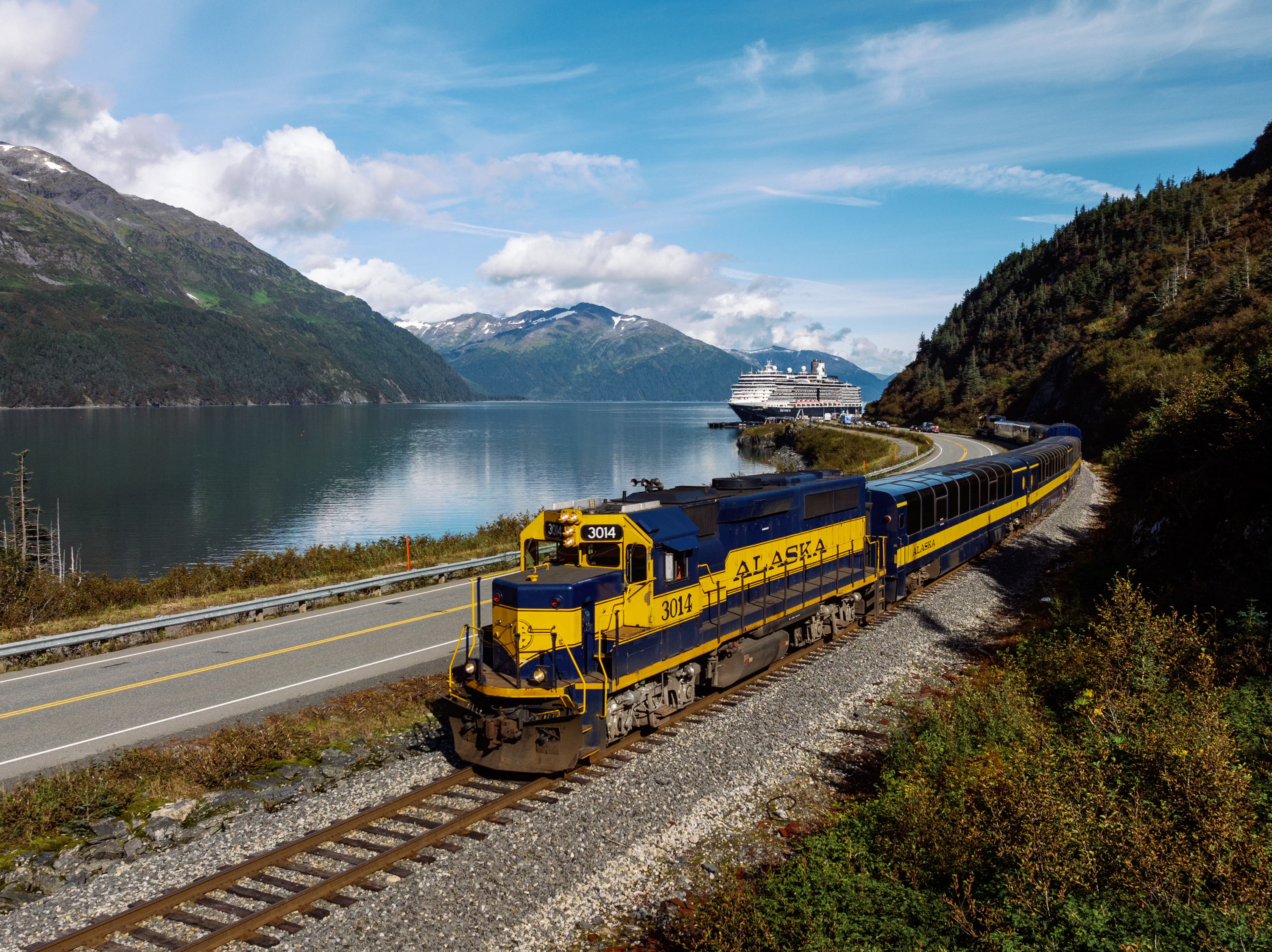 Disembark and embark on a picturesque rail journey along Turnagain Arm aboard the cruise train, en route to Anchorage, where your Journey Host will be waiting to greet you.