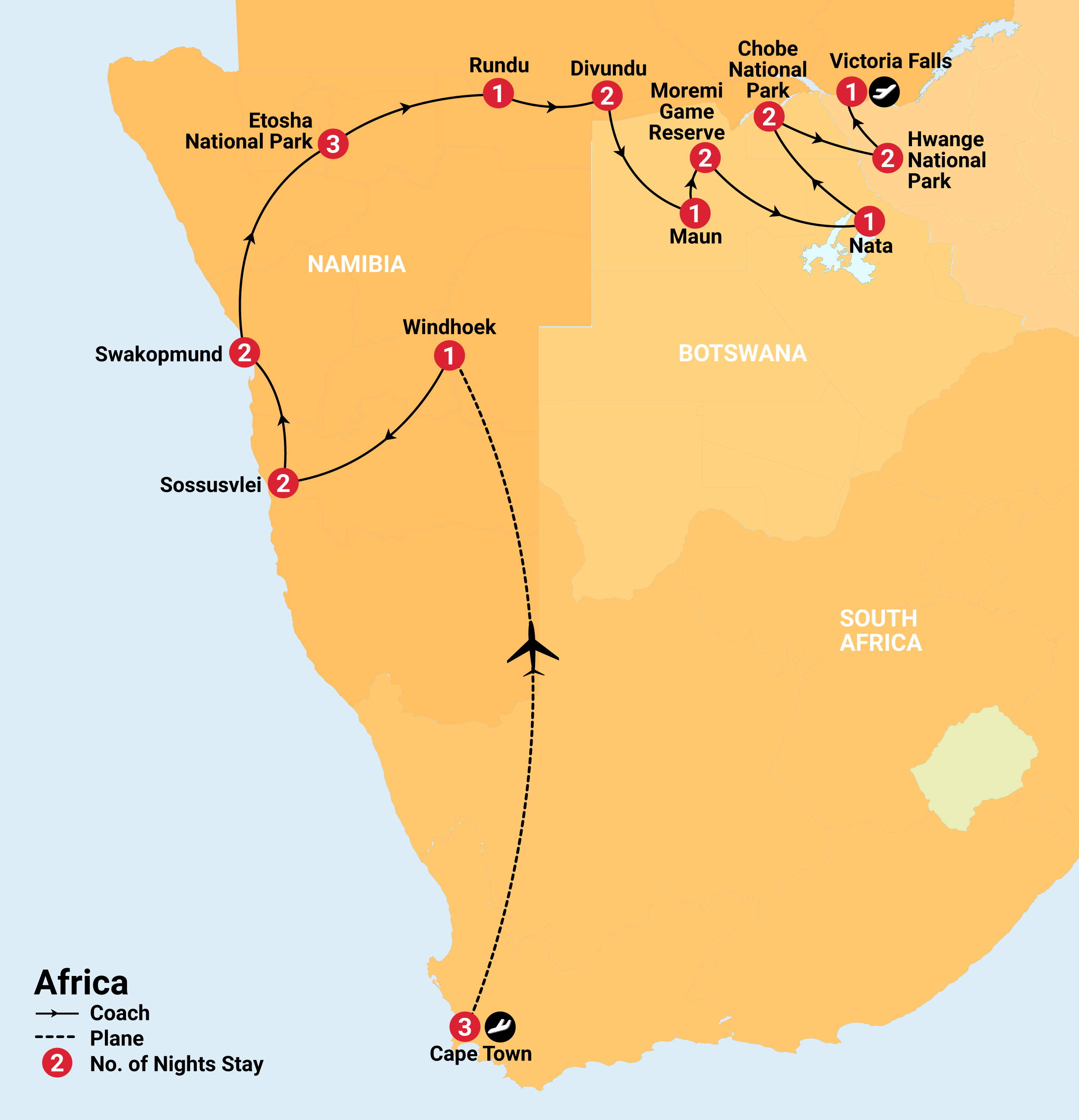 Day 2 - Namibia & Okavango Discovery With Victoria Falls - Cape Town to Victoria Falls - Current