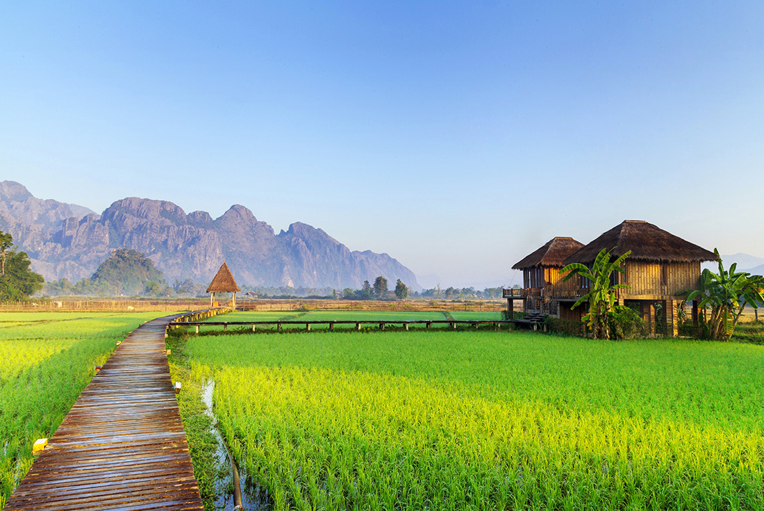 Take a high-speed train to Vang Vieng. Situated on the Nam Song River, Vang Vieng is surrounded by towering limestone karsts and is a great place to enjoy being surrounded by nature. After checking in to the hotel, use tonight to plan out your next few days with your group and leader.