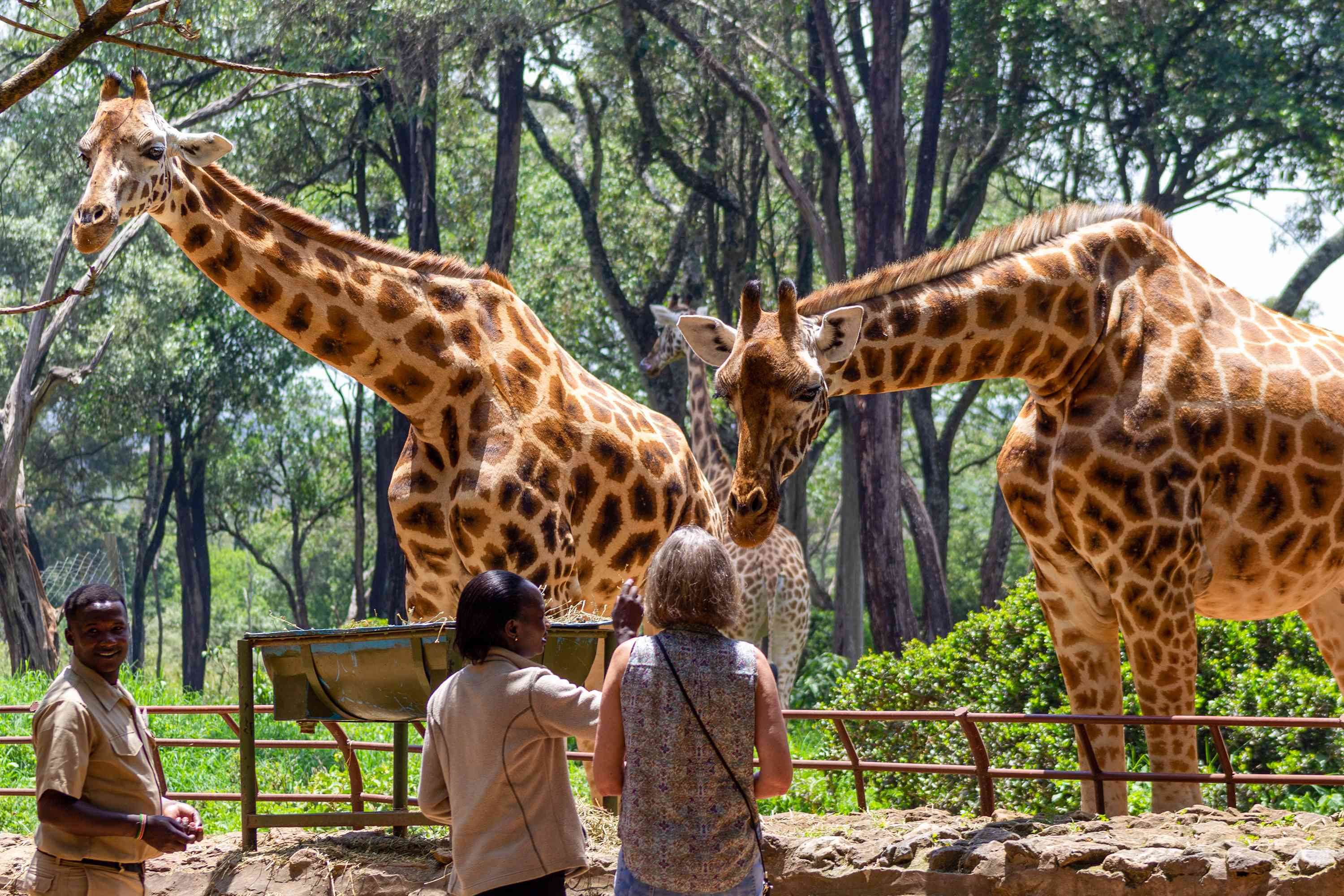 We then visit the Giraffe Centre, an important conservation initiative created by the African Fund for Endangered Wildlife. Here, we come eye-to-eye with gentle giants whilst feeding them from an elevated platform.