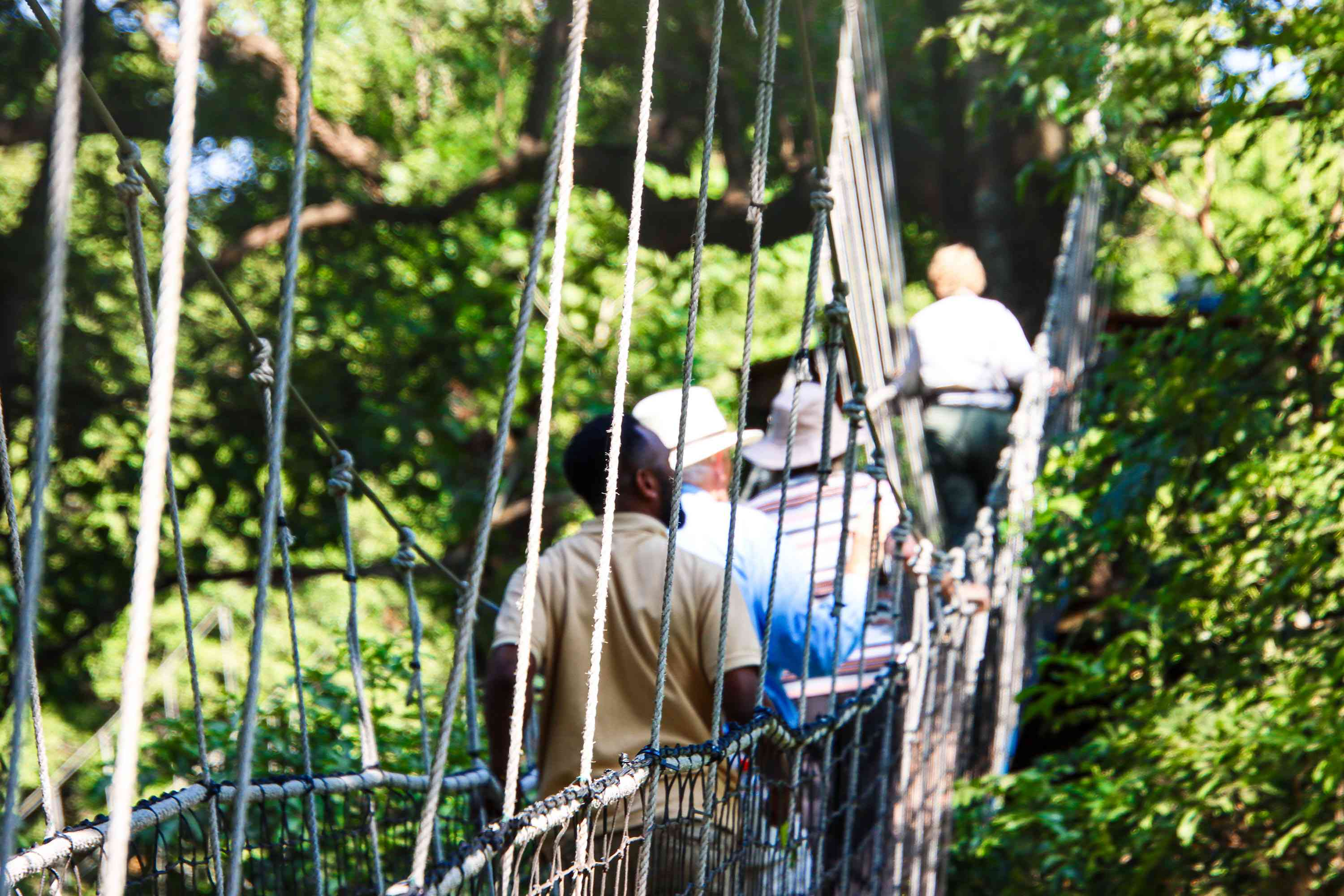 Our sightseeing then takes a different perspective, to life among the leaves of the ancient forest canopy of this magnificent national park. Travelling along the Manyara Treetop Walkway, we’ll make our way over a series of suspension bridges to admire the region’s untouched flora and fauna at a birds-eye view. Listen out for the growls and barks of baboons, Silvery-cheeked Hornbills and Blue Monkeys – we might even be lucky enough to see buffaloes grazing on the forest floor!