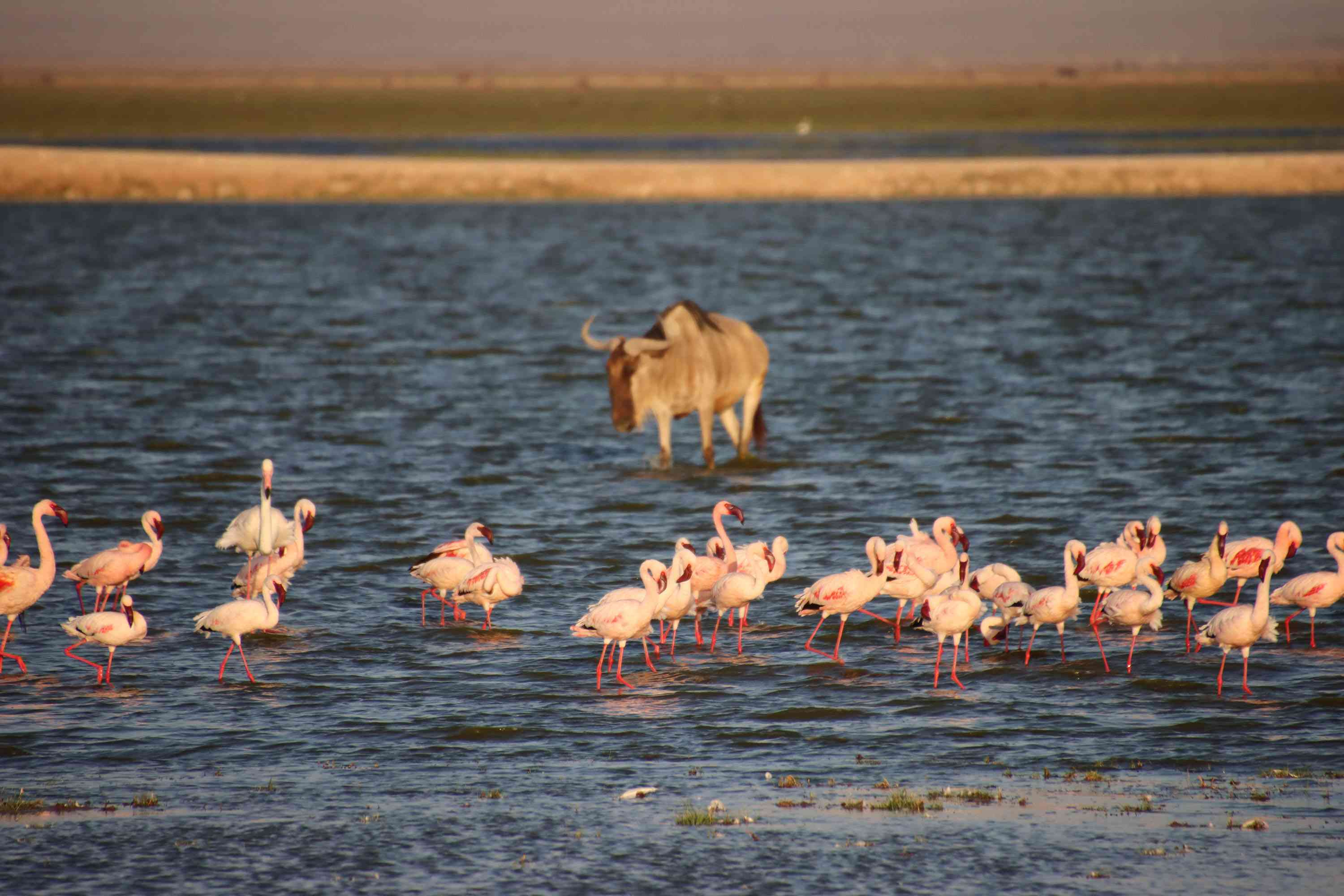 Before we make our way to our accommodation, we’ll take part in another exciting wildlife encounter on a game drive through the area. This offers a great chance to spot some of the park’s diverse wildlife, including pink flamingos and rhino.