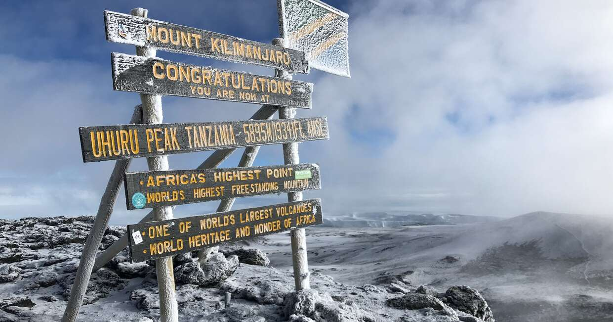 Passing the Hans Meyer Cave at 5,220 metres/17,126 feet, the climb slowly but surely ascends. At sunrise, we'll reach Gillman's Point at 5,681 metres/18,638 feet - the crater rim of Kilimanjaro - where the sun will start to warm the land. We'll soon forget the cold of the night and after a further hike of one to two hours, we'll reach Uhuru Peak at 5,895 metres/19,431 feet.