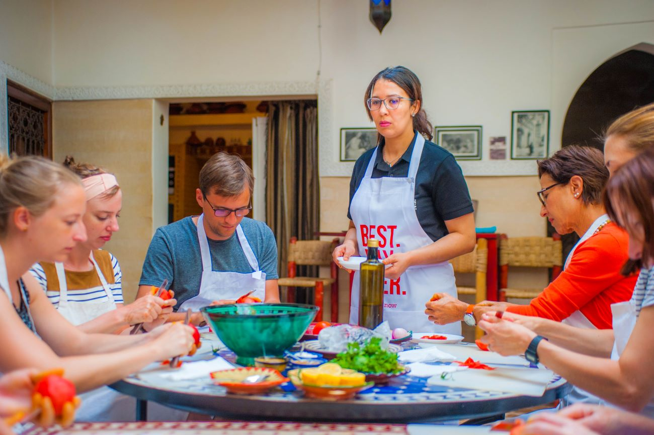 Get ready for the ultimate tajine experience on this one of a kind tour in Marrakech. From market to plate, you’ll learn how to whip up a tajine from scratch, using ingredients from the famous Marrakech souks. The best part of it all? You get to devour your tajine after you’ve made it! We will start in Djemaa El-Fna, the centre of all the action in Marrakech before heading into the souks. Here your local host will teach you the Arabic words for all the ingredients you’ll need to cook your tasty tajine, giving you insider knowledge for your shopping experience. The souks are the legendary markets where all the locals shop for food in Marrakech. Meats, vegetables, herbs, spices; the souks have all the freshest produce you’ll need for cooking Moroccan cuisine, and with your new Arabic skills you’ll be able to order exactly what you want from the locals. (And if not, the local vendors will be happy to teach you more food vocabulary!). Please note: the markets of Marrakech are still very traditional, when we purchase the chicken for the tajine dish, occasionally you may see the animals being slaughtered ready for sale, as is the custom in Morocco. If you would prefer to leave this part to the imagination, please let your Guide know. Now it’s time to get your cook on! During your hands-on cooking class the chef will be giving you step-by-step instructions about how the locals cook the perfect tajine. You’ll learn all about the key ingredients and spices needed to make it as authentic as possible, the perfect skill to take home from your Marrakech travel experience. The class takes place in the beautiful setting of a traditional Moroccan riad (house), where you will meet the family and hear about medina life for a Marrakech family. Finally, it’s time to eat. You’ll get to savour the fruits of your labour and the food will taste even better as you’ve made it with your own two hands! Your local guide will then take you back to Djemaa El-Fna Square where the tour will finish. From here your guide can give you directions back to your hotel or you can continue to shop in Marrakech’s beautiful souks. When you’re trying to decide what to do in Marrakech, make sure you don’t miss out on this epic tajine adventure, a truly authentic experience like no other in the city! Note: All through Djemaa El-Fna there are fake guides who will try to convince you to do a tour with them. Please make sure you find the official guide, who will be holding an Urban Adventures sign or badge and will be waiting for you in front of the café.