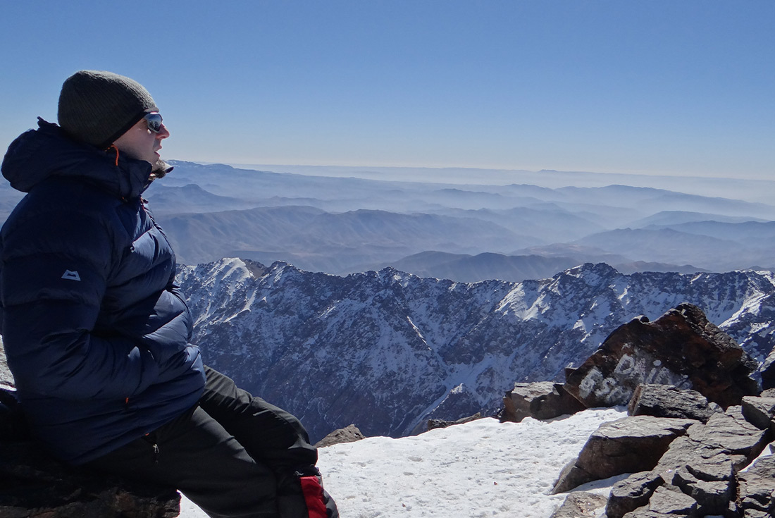 Embrace an early start this morning and tackle the rocky terrain that leads to the summit of Mt Toubkal. Gear up with crampons and a head torch (and spare batteries) to start this morning’s hike across snowy, perhaps icy terrain. Take in the beautiful silence of the morning while you make your way up steep terrain to the col. Once you reach it, the steepness of the climb calms, but the winds often pick up here, so be sure to have your hard shell handy in your day pack. Now you are up for a final climb, likely with rising sun on your right-hand side. At 4167 m above sea level, this is truly the roof of North Africa. Your efforts are rewarded by views from the summit, which on a clear day can include the entire Atlas Mountain range, the Atlantic coast to the west and the Sahara to the east. After a rest at the summit and time spent marvelling at the incredible views, make your way back to Base Camp.