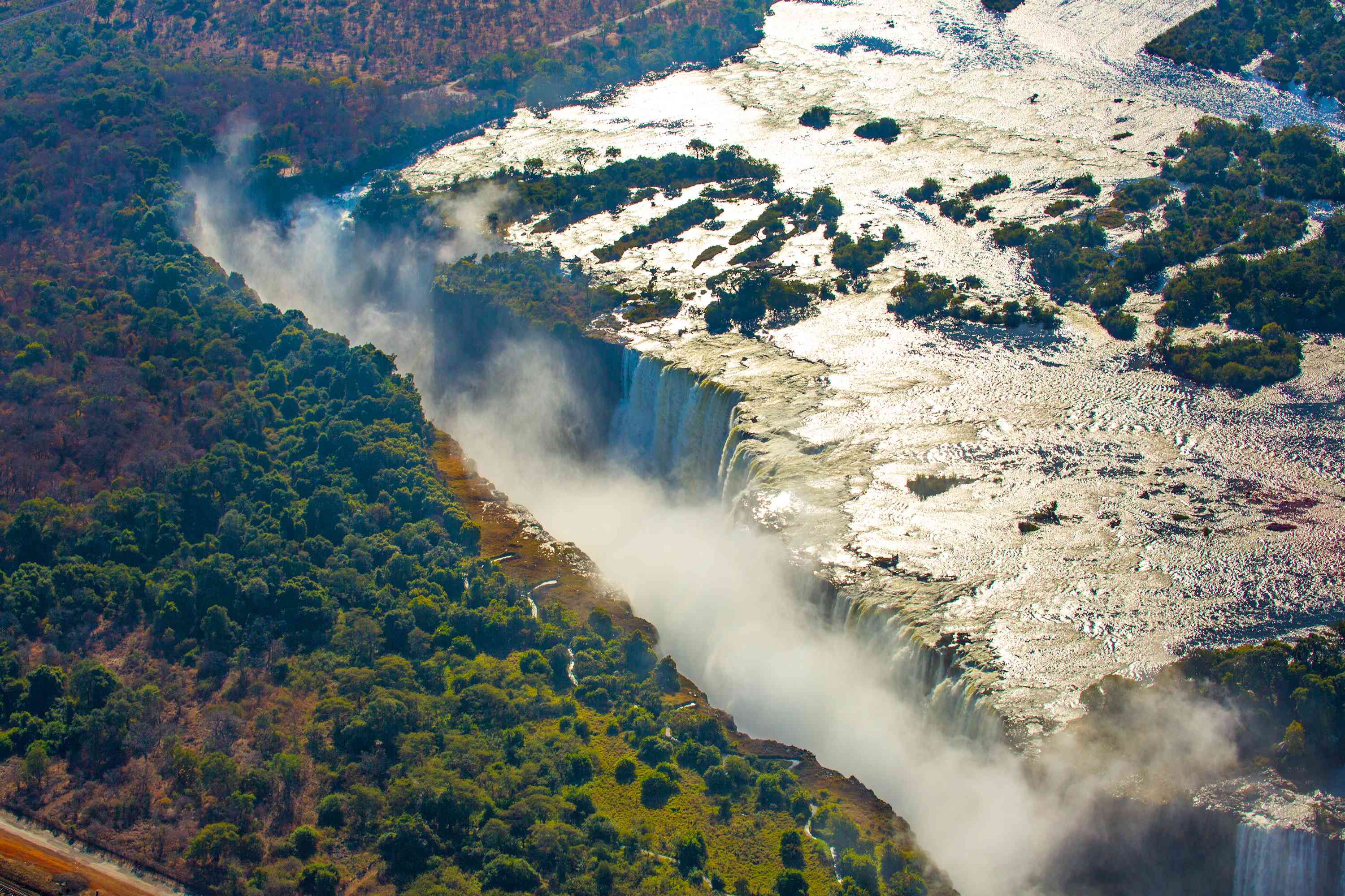 Victoria Falls, also known as the ‘Smoke that Thunders’, is suggested to be the world’s biggest waterfall at 1.7-kilometres-wide and 110-metres-high. The noise of the falls can be heard from 40 kilometres away, while its spray and mist can be seen from 50 kilometres.
