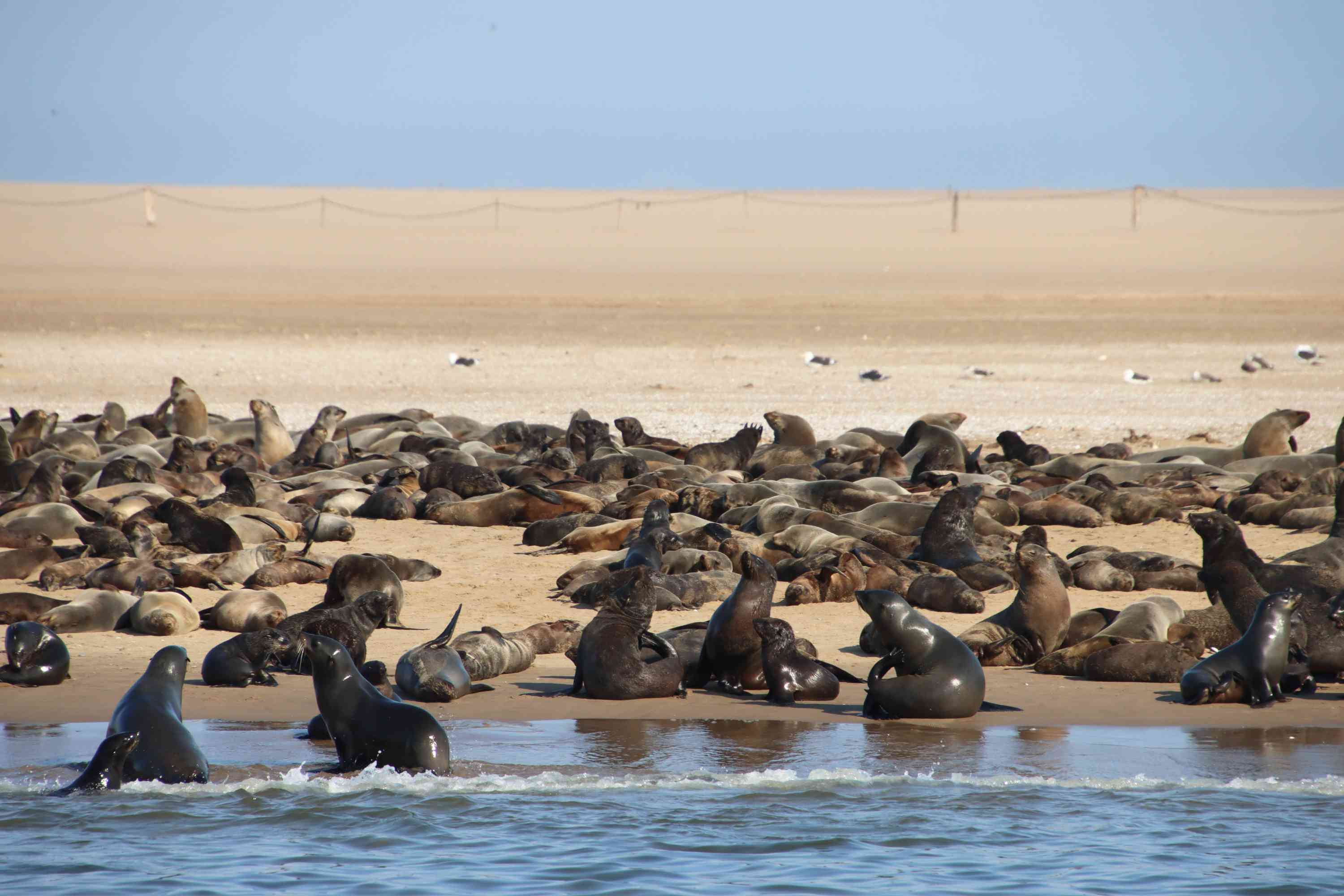 This morning, we embark on an exciting marine excursion from the Walvis Bay Waterfront to explore Namibia’s “Marine Big Five” — whales, dolphins, mola, leatherback turtles, and seals. As we sail along the coast, we’ll pass by local oyster farms and head toward the remote Pelican Point peninsula, home to over 60,000 Cape Fur Seals. It’s the perfect opportunity to watch these playful creatures in their natural habitat.