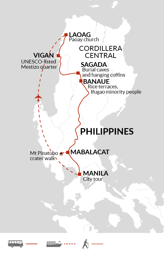 There are no other activities planned today, so you're free to arrive in Manila at any time. If you'd like an airport transfer today, you'll need to arrive into Ninoy Aquino International Airport (MNL), which is a one-hour drive from our hotel. If you miss the welcome meeting, our tour leader will catch you up as soon as possible - you can meet them in the hotel lobby on the morning of day 2.