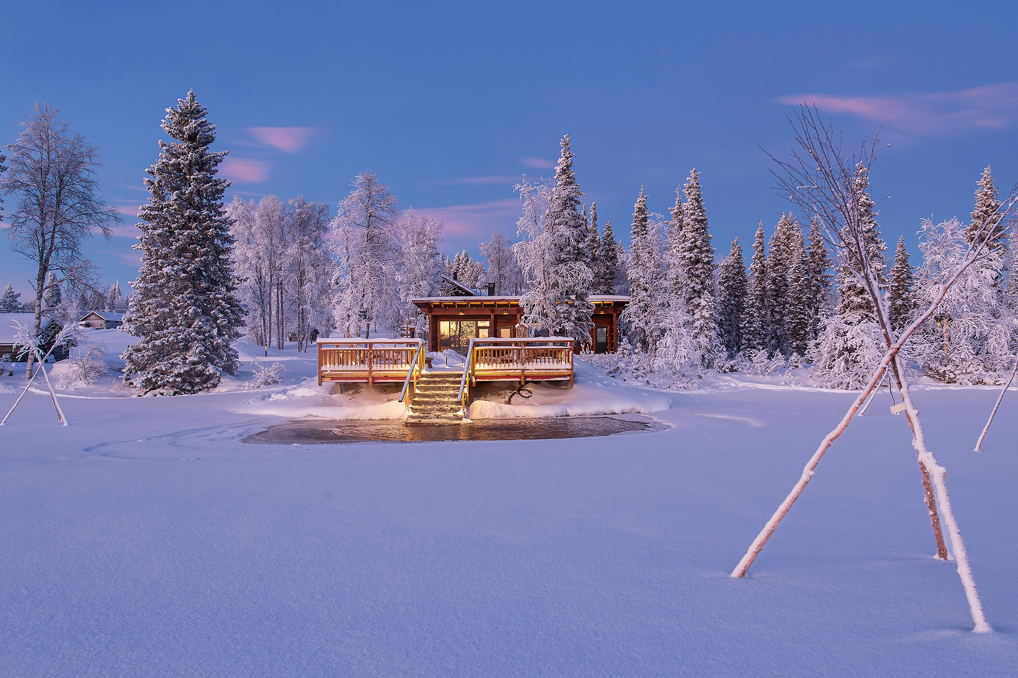 Stay for four nights in these innovative glass roofed 'kota' huts – cozy nests inviting you to curl up under the Northern Lights after an exciting day outdoors doing winter activities such as dogsledding, snow mobiling and meeting the reindeers. Welcome to your home in the wilderness!