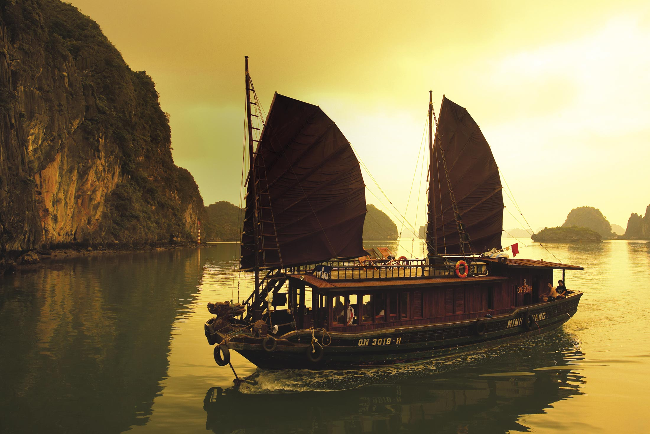 Depart Hanoi and travel to Ha Long Bay – one of the great natural treasures of Vietnam and a UNESCO World Heritage site. Board your Feature Stay accommodation for the evening – a gloriously beautiful and traditionally decorated junk-style boat featuring modern conveniences. Set sail in comfort as unforgettable views of scattered islands and towering limestone karsts slowly unfold in front of you. Explore the bay and sit down for a seafood lunch onboard. The sights you will visit vary, but you may stop at a cave where your leader will point out interesting rock formations or a fishing village to learn about local life. In the afternoon you will have opportunities to swim, kayak, or simply relax on the beach. Soak in the stunning surroundings with a dinner on deck before settling in for a night of stargazing and swapping stories.