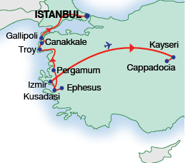 This is a private tour of Turkey. It includes visits to the most popular sites in Turkey. Transportation by private vehicle, guide, accommodation, flights, and entrance fees to the mentioned sites are included.