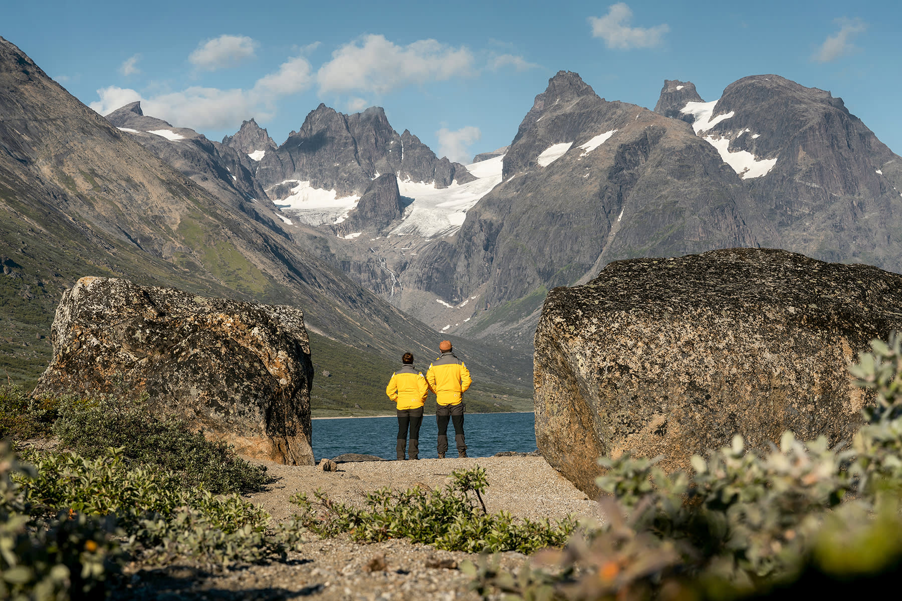 We’ll transit through the scenic 105-kilometer long Prins Christian Sund Fjord (Ikerasassuaq), and explore the dramatic fjords of South Greenland. Our team has planned a visit to the village of Aappilattoq, where you can experience local culture, music, and traditional foods. The journey continues to the steep-walled 70-kilometer Tasermiut Fjord, known as Arctic Patagonia, where overnight camping and various excursions are available amidst stunning glaciers and peaks. The maze of fjords, sounds, islets, inlets and skerries (rocky islands) in and around Cape Farewell (Nunap Isua) at Greenland’s most southern tip reveals a magic found nowhere else. Transiting the Prins Christian Sund Fjord (Ikerasassuaq)—one of the world’s most scenic fjords—will be truly unforgettable. Guests can then look forward to dramatic mountain and seascapes with glaciers sweeping down to the coast, and spectacular vistas around every corner. Inhabiting this domain are Southern Greenlanders living on the frontier, a people as unique as the landscape they call home. This is where the migrating hunting peoples from the east finally settled around the European trading posts. The few villages in this southern region have gained a level of fame thanks to the inhabitants who remain steadfastly faithful to their hunting and fishing heritage. Your time in Arctic Patagonia will allow you to marvel at the impressive glacier at its head, with rivers of ice tumbling toward the sea, and the imposing peaks of Nalumasortoq and Ulamertorsuaq that dominate the skyline, making for the most scenic backdrops to your hike or helicopter excursion.