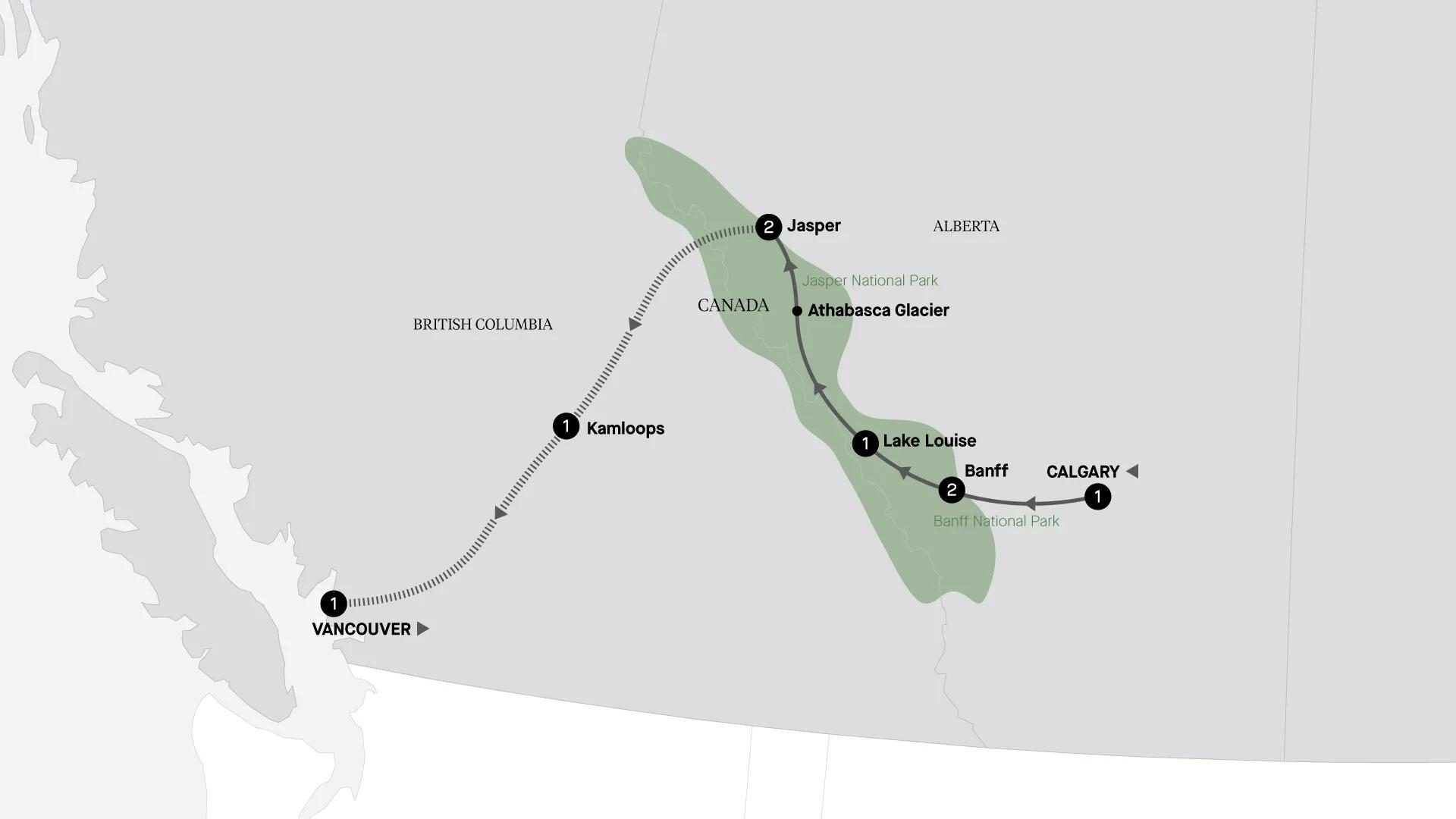 Explore the wonders of the Canadian Rockies in depth on this eight-day holiday from Calgary to Vancouver. Soak up the views from your room at Fairmont Chateau Lake Louise, journey onto the Athabasca Glacier and savour GoldLeaf Service on the iconic Rocky Mountaineer, among many other highlights.