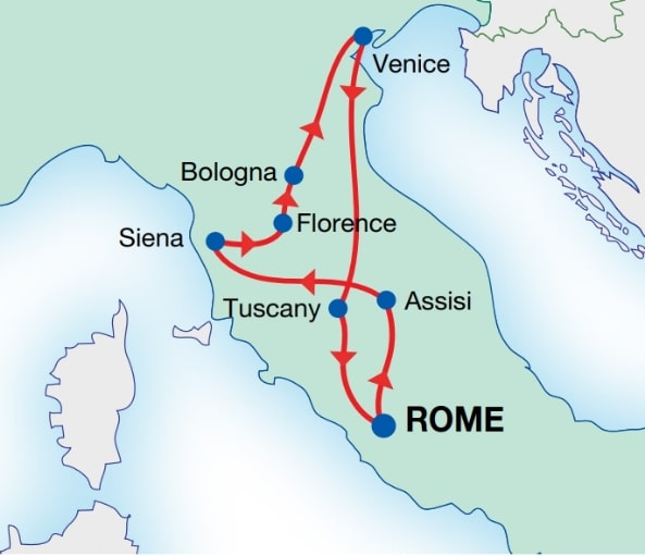 Departing from Rome, explore the iconic cities of Florence, Venice, and Tuscany. Enjoy two nights in Venice, where you'll be treated to a spritz or prosecco as you take in the highlights of the city with your tour leader. Spend the afternoon strolling along Venice’s charming canals at your leisure. Take your time to visit the Basilica of St. Francis in Assisi and admire masterpieces by Giotto and Cimabue.