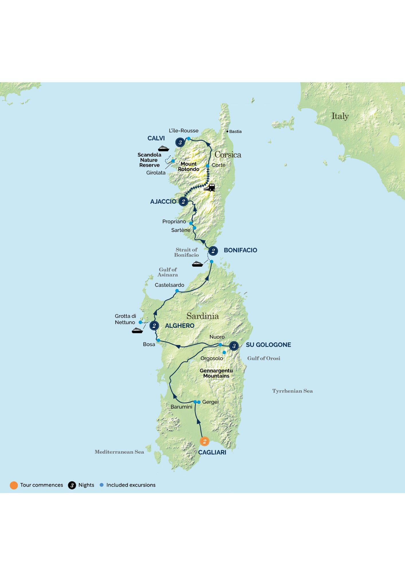 One Italian, one French, both fiercely independent. Visit 3,500 year old huge stone ‘Nuraghe’ Tower villages, cruise to the beautiful Neptune’s Caves, enjoy stunning cliff top coastal drives, take 4WDs deep into rugged ravines for a shepherd’s picnic lunch. Visit colourful Bosa, ‘bandit’ Orgosolo, Catalan Alghero, the staggering cliff top town of Bonifacio, Napoleon’s Ajaccio and...best of all…3 nights in remarkable Su Gologone.