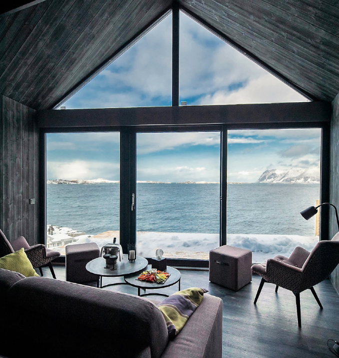 Winter is a magical time at Hamn i Senja. During your stay, become accustomed to the beautiful Arctic moods, snow covered mountains and the aurora borealis dancing across the sky.