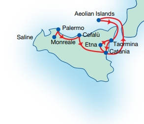 - Visits: Monreale, Palermo, Cefalù, Catania old town centre, Etna